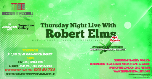 There’s a series of live events in Hyde Park with Robert Elms starting next Thursday 5 July called Thursday Night Live. They are every Thursday at 7.30pm throughout July and August and so far I have agreed to appear at three of them.