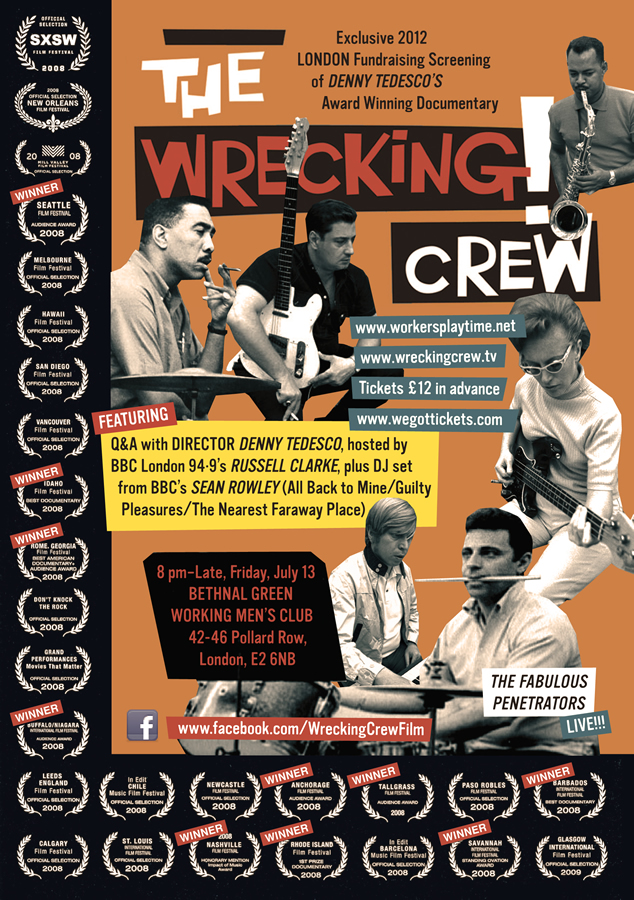 About four years ago I read about a film that sounded right up my street, a film about the band of session musicians who played on hundreds of the best records that came out of the West Coast of America on the 1960 and 1970s. They were called the Wrecking Crew and rather appropriately that’s the name of the film.
